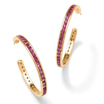 Night or day, casual or dressed up, birthday or any day, these round hoop birthstone pierced earrings are great for adding that simple touch of elegance. A single row of round channel-set stones travels the length of this C-hoop earring. A perfect everyday staple. 1 1/5" diameter. Layered in 14k gold. Specify 1 birthstone. Birthstones are simulated gemstones. Palm Beach Jewelry Item #: 47517