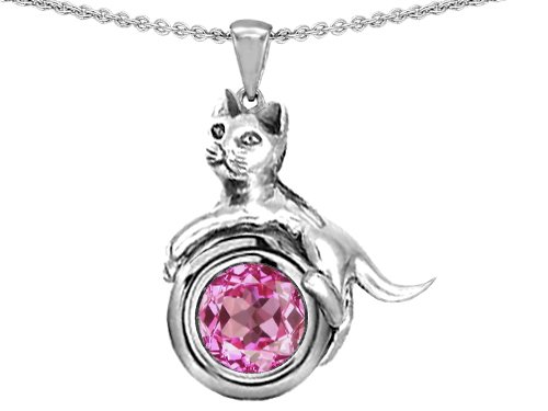1.50 cttw 14k White Gold Plated 925 Sterling Silver Cat Lover Pendant with September Birthstone Lab Created Pink Sapphire Review