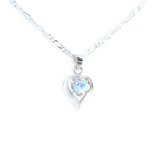 Birthstone March Aqua Heart Crystal Sterling Silver Necklace Feature