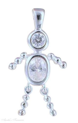 Necklace With April Birthstone Babies Boy Child Brat Pendant With Clear Cubic Zirconia. These Birthstone Babies Kid Pendants Measured Hanging Freely From The Bail Are Approximately 28.5mm Or 1 1/8" From Top Of The Bail To The Bottom Of The Legs, 22.5mm