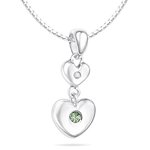 Peridot August Birthstone Double Heart Children's Pendant. This product is sold by TBR International.,METAL:Silver,ACTUAL METAL:Silver,GEMSTONE:Peridot,AVERAGE COLOR:Light Green,COLOR:Green