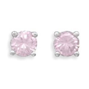 October Birthstone Pink CZ Sterling Silver Stud Post Earrings Feature