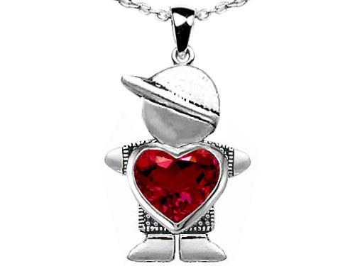 2.00 cttw 14K White Gold Plated 925 Sterling Silver Little Boy Holding Heart Mother Birthstone Pendant Lab Created Ruby Review
