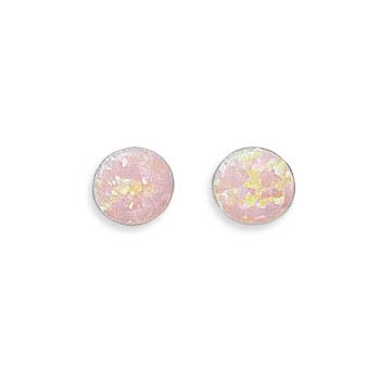 Synthetic Pink Opal Stud Earrings Childrens Womens Teens 7mm Sterling Silver Feature
