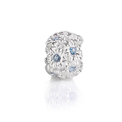 Bling Jewelry 925 Sterling Silver CZ Aquamarine Flowers March Birthstone Bead Feature