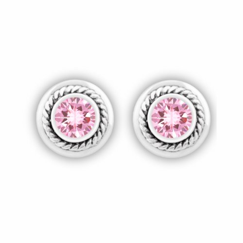 JanKuo Jewelry Silver Tone Stud Earrings 9mm Pink Cubic Zirconia October Birthstone with Gift Box Feature