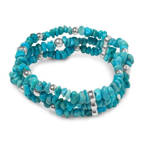 Sterling Silver Blue Turquoise Triple Strand December Birthstone Gift Beaded Stretch Bracelet Review