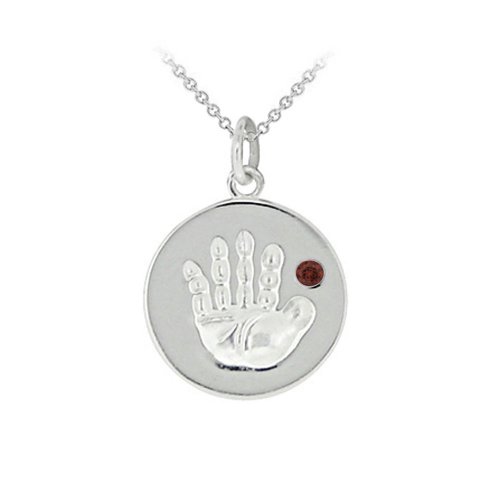 Sterling Silver Garnet January Birthstone Handprint Pendant, 18" Review
