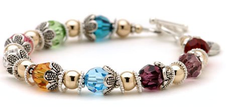 Lily Brooke Jewelry, an online retailer of unique mother bracelets, has designed the Grandma Brag Bracelet to suit the taste of any mom or grandmother by utilizing 14k gold filled beads, handmade Bali sterling silver bead caps and round Swarovski crystals. This two-toned birthstone bracelet will hold up to 9 birthstone crystals in any preferred order. Our designer will contact you via email upon order placement to confirm the birthstone order and preferred size. Bracelet is shipped in a Lily Brooke Jewelry pink signature gift box for a beautiful presentation to mom or grandma. All Lily Brooke bracelets are handmade to order to your specifications.