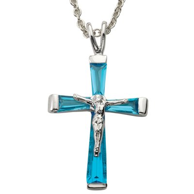 Sterling Silver December Crucifix on 18" chain Birthstone Jewelry Birthstone Crucifix Necklaces Gift Boxed w/Chain 18" (Including Lobster Claw) Gift Boxed Feature